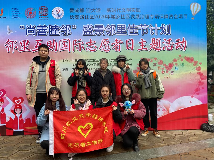 2020年12月5日上午,tyc41183太阳成集团学经济学院学生会文娱部四名成员与团委青年志愿者工作部一名成员于长安路社区开展了“邻里互助国际志愿者日主题活动”,为社区居民提供暖心互助项目。