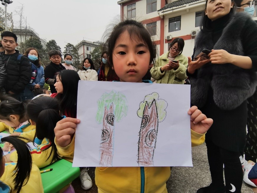 活动结束后,温江融媒对参与此次活动的志愿者们进行了采访,在被记者问道为什么想到要开展此活动时,志愿者熊天朗回答道:“作为惠民社区的大学生,我认为我们有责任肩负起号召大家保护环境的责任。另外,我觉得绿色环保要从小朋友抓起,通过引导小朋友们绘画树木,绘画春天,不仅让小朋友们对植树节有了更深刻的认识,还以富有童趣的方式呼唤了孩子们爱护环境,一举两得。”
