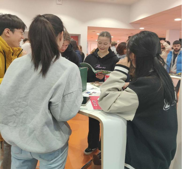 On the day of the event, the exchange students enthusiastically and vividly introduced the Sino-French student exchange program to ICN students. Drawing from their personal experiences at Sichuan Agricultural University, they provided a comprehensive overview covering teaching characteristics, academic strengths, educational resources, vibrant campus life, and the urban culture of Chengdu, the city where the university is located. With engaging stories and sincere sharing, the exchange students captivated many participants, attracting a large number of students to stop and inquire. Many French students expressed interest in studying at Sichuan Agricultural University, creating a lively and enthusiastic atmosphere.