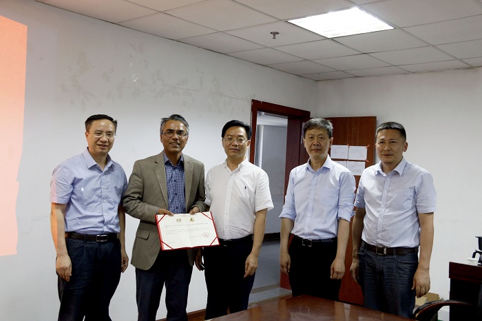 Mr. Chen Daiwen issued the appointment letter of the visiting professor of the School of Economics to Dr. Paudel at the colloquium,.