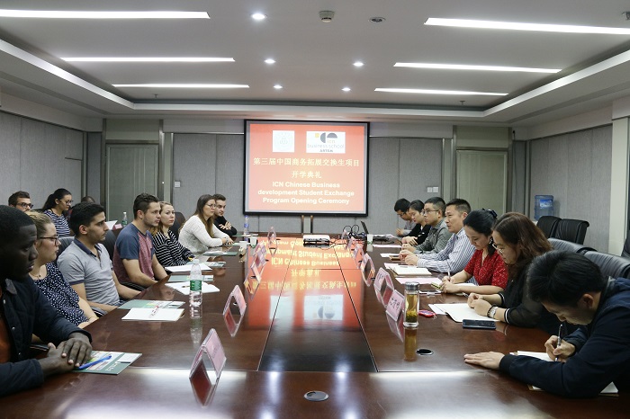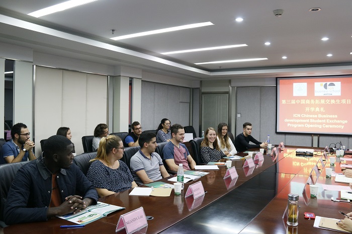 Liu Tao, deputy director of the school's academic affairs department, Wu Ping, deputy director of the College of Economics, Zhou Zheng, director of the International Cooperation and Exchange Department, ShenQianling, director of the International Economics and Trade Department, Kang Yuyang, the French ICN representative in China, and 11 French exchange students attended the ceremony.The opening ceremony was hosted by ShenQianling.