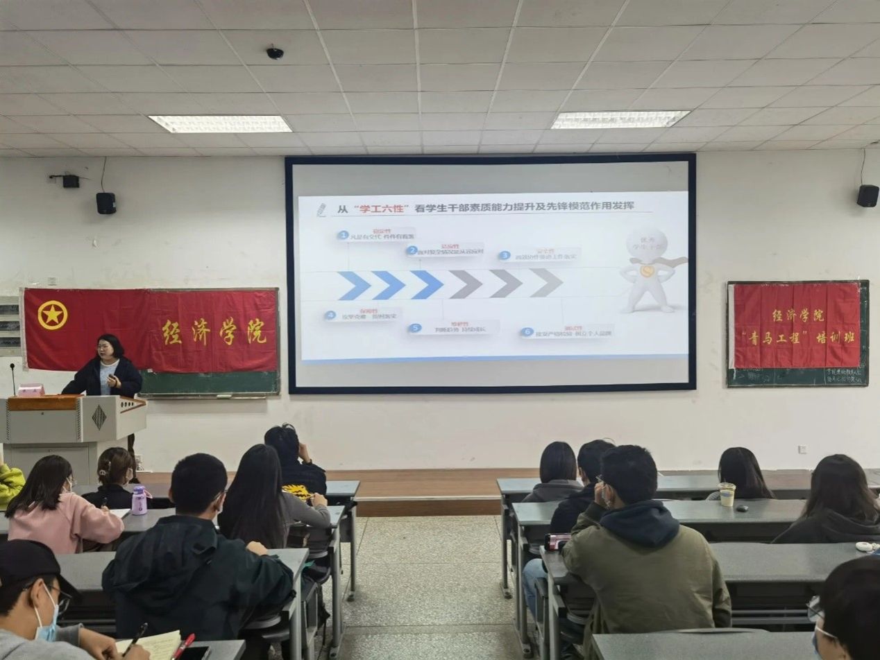 朱玉以个人技能的澄清为切入点,阐述了学生干部能力素质提升与发挥好学生干部模范带头作用之间的关系,向学生干部们介绍了技能的分类,一起分析了知名成功人物身上所具有的技能,一同探讨了“我愿意与什么样的人共事”这一话题。然后,朱玉从“军工六性”谈起,进而提出“学工六性”,即稳定性、适应性、安全性、保障性、维修性和测试性。朱玉指出,学生干部应当是德才兼备的模范群体,要在学习生活中发挥学生干部的模范带头作用,要参与良性竞争“共生”成长;懂得让渡自我“引领”青春,共同进步,不负青春,不负韶华,拥有更美好的明天。