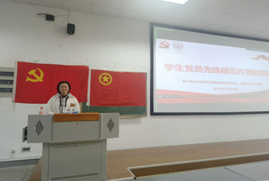 钟贝结合党的二十大报告,阐述了在全面建成社会主义现代化强国、实现第二个百年奋斗目标,以中国式现代化全面推进中华民族伟大复兴的新征程中,新时代大学生党员肩负的时代使命和历史重任,强调了学生党员发挥先锋模范作用的重要性;从中国共产党的性质和宗旨以及中国共产党党员的属性和义务阐明了学生党员发挥先锋模范作用的必要性;结合我院学生的实际情况,从学习、生活、疫情防控、实习实践、文化体育、创新创业、就业等不同角度列举了学生党员应该如何切实地发挥先锋模范作用,团结带领全院同学,把青春梦、成才梦融入中国梦,让青春在全面建设社会主义现代化国家的火热实践中绽放绚丽之花。