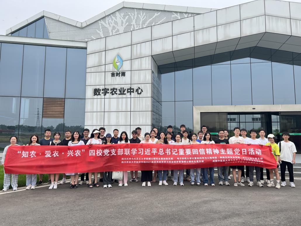5月20日,由学校研工部指导、研究生党建服务中心承办的“知农·爱农·兴农”四校研究生党支部联学习近平总书记给中国农业大学科技小院的同学们回信精神主题党日活动举行。我院2021级应用经济学与林业经济管理硕士研究生党支部、四川大学马克思主义学院硕士研究生第四党支部、电子科技大学计算机科学与工程学院研究生第九党支部、成都中医药大学马克思主义学院研究生党支部共40余名学生党员参加。