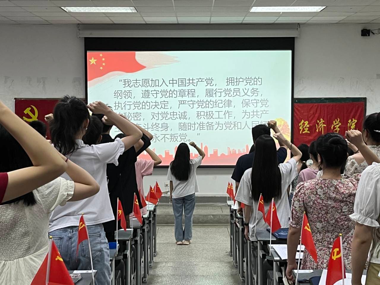 钟贝老师以“廉洁”为主题为毕业生党员上了在校的最后一节党课,对毕业生党员进行了廉洁从业的教育。她提出三点希望:一是面对法规必须时刻保持敬畏,二是面对诱惑必须时刻保持定力,三是面对岗位必须时刻保持清醒,警示他们以案为鉴、牢记教训、廉洁从业,同时勉励他们牢牢坚守廉洁从业底线,在未来的人生道路上不断磨砺意志品质,不忘初心、牢记使命,做一个思想正确、廉洁诚信之人。党课后,在毕业生党员代表赵霜同志的领誓下,全体毕业生党员重温了入党誓词,通过一句句铿锵有力的誓词牢记入党初心,坚定理想信念。同学纷纷表示,一定将学院的关心和嘱托牢记在心,努力践行川农大精神,继续保持党员的先进性,积极进取、勇于拼搏,在新的学习、工作岗位上砥砺前行、建功立业,为党旗增辉。