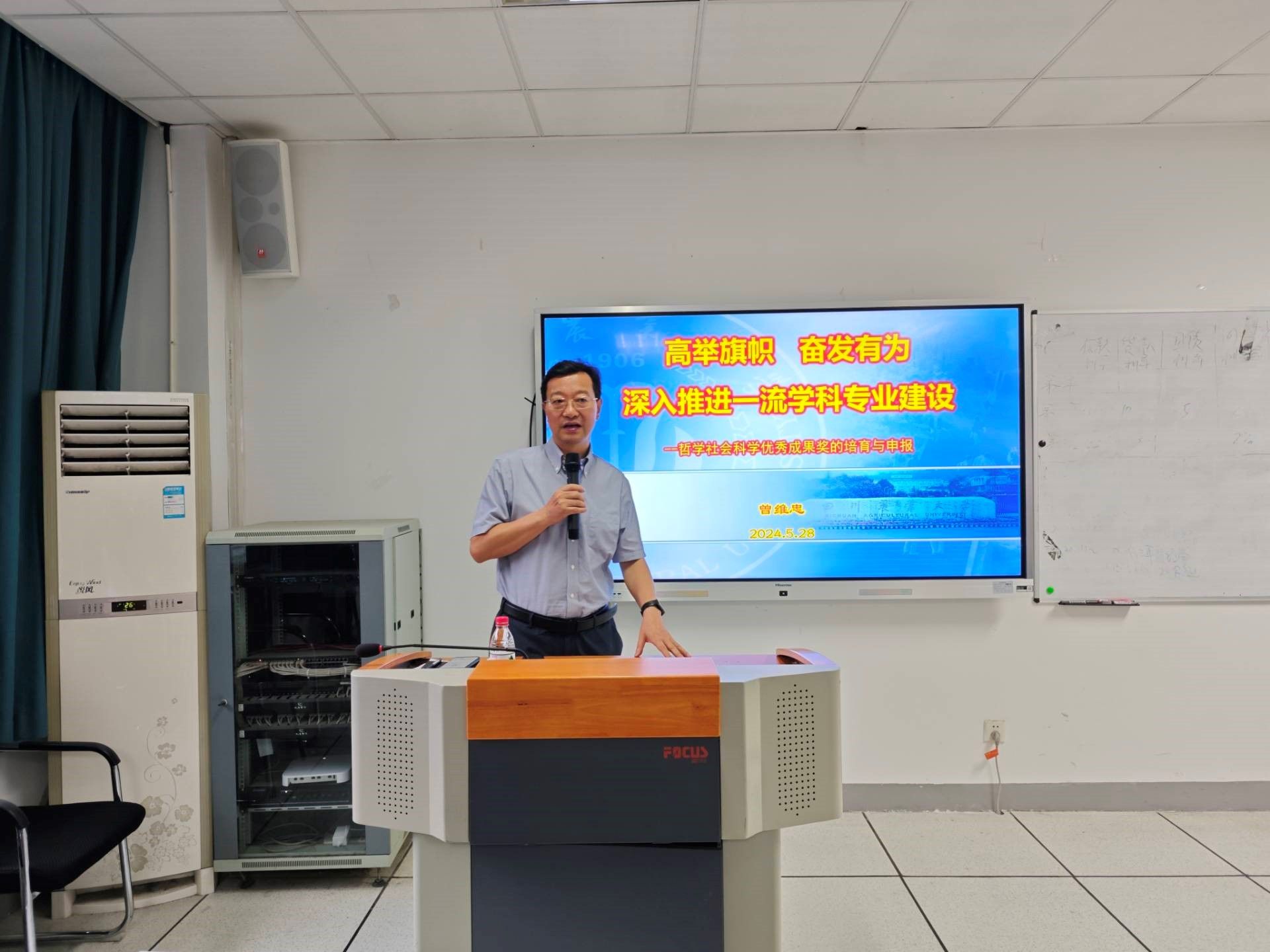 5月28日下午,“学‘习’讲堂,‘经’彩一课” 理论专题党课在4-C409会议室火热开讲。本场讲座由我院党委委员、院长曾维忠教授作《高举旗帜 奋发有为 深入推进一流学科专业建设》专题党课报告。学院55名教工党员聆听了党课,非党员教工列席党课。党课由学院党委书记刘思麟主持。