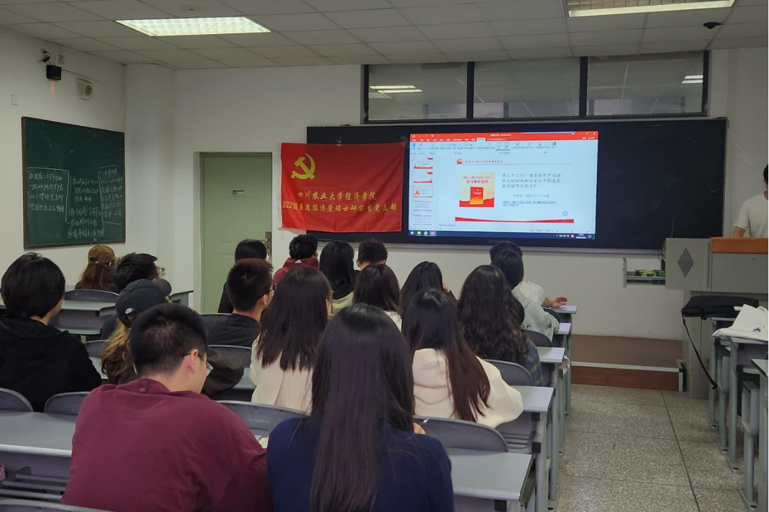 2023级应用经济学硕士研究生党支部于10月8日在4C609教室开展“学习贯彻党的二十届三中全会精神”主题党日活动。