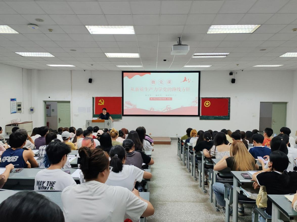 “新质生产力就是那把打开未来之门的钥匙”,学院党委办公室副主任、团委副书记朱玉在《从新质生产力学党的路线方针政策》专题讲座中以党的基本路线为切入点,详细介绍了新质生产力是什么,为什么要发展新质生产力,并讲述新质生产力与党的路线方针政策的紧密关联,加深了学员对新质生产力的理解。