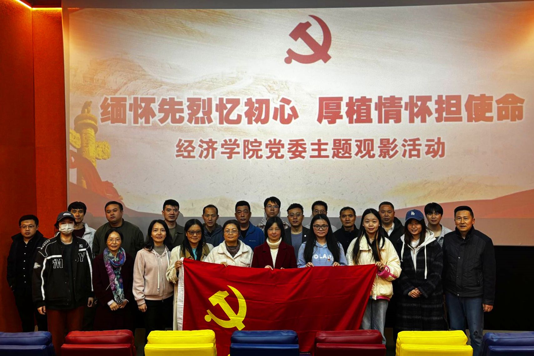 为深入学习贯彻党的二十届三中全会精神,进一步弘扬爱国主义精神,传承红色基因,11月21-22日,经济学院党委组织开展了以“缅怀先烈忆初心 厚植情怀担使命”为主题的红色观影党日活动,51名师生党员代表集中观看了《志愿军:存亡之战》。