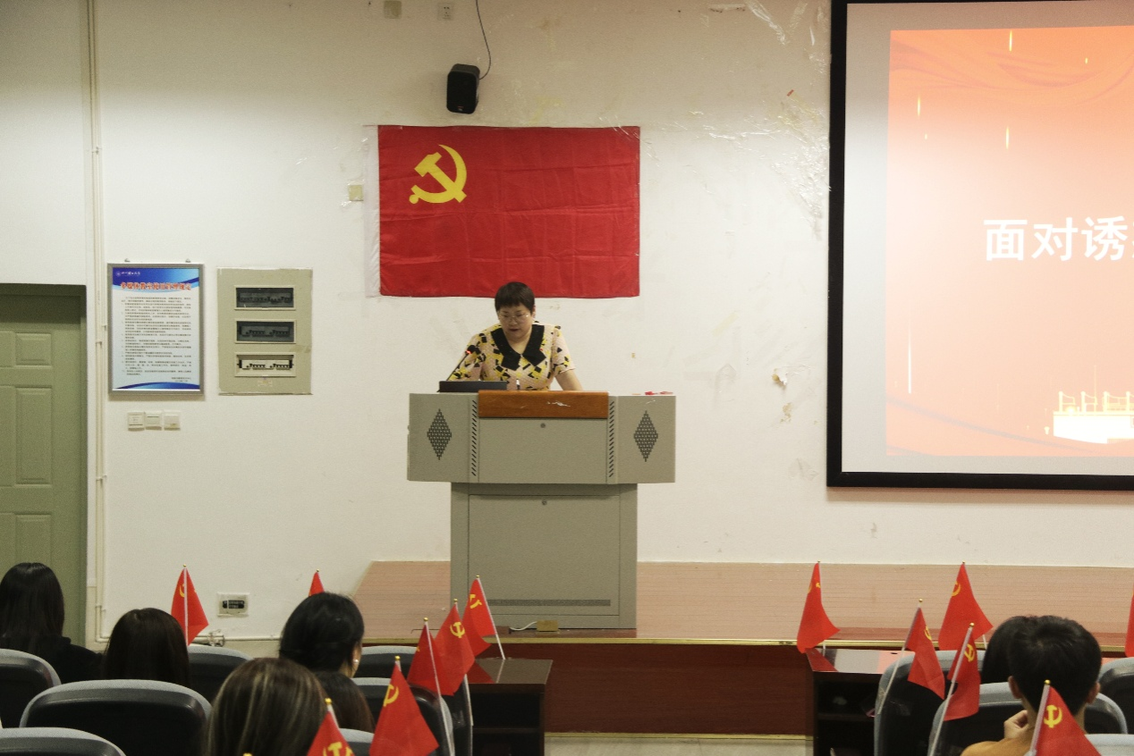 会上,朱玉老师作《廉洁从业,创造美好未来》党纪学习教育专题党课。她从“面对法规法纪必须时刻保持敬畏、面对诱惑要时刻保持定力、面对岗位必须时刻保持清醒”展开阐述。重点阐述了党内法规体系,尤其是新修订的《中国共产党纪律处分条例》,通过学习体会、经历感悟与身边的案例等几个方面,强调了学习掌握《条例》内容的紧迫性和重要性,为毕业生党员敲响纪律“警示钟”,注入清廉“强心剂”,增强防腐“免疫力”。钟贝强调,在大家走上工作岗位或步入新的求学阶段之前开展最后一次党课教育,就是希望大家谨记只有敬畏党纪国法,牢牢坚守廉洁从业底线,才能赢得事业的胜利,才能把握家庭的幸福,才能品味人生的快乐。