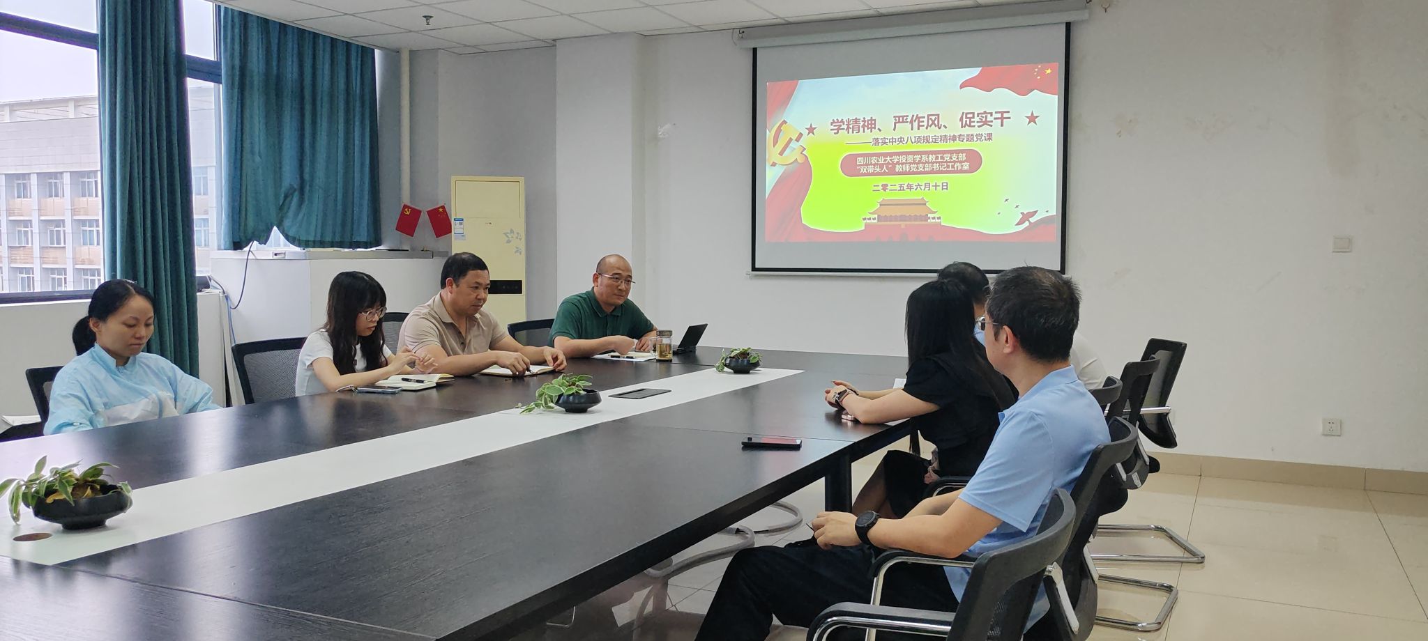 各教工党支部书记紧扣学习贯彻中央八项规定精神这一主题,分别以"严明纪律规矩 筑牢作风防线"和"弘扬优良作风 永葆政治本色"为题,带领师生党员深入学习中央八项规定及其实施细则精神,深刻领会新时代作风建设的新内涵新要求。教工党支部重点学习了《中央层面深入贯彻中央八项规定精神学习教育工作专班、中央纪委办公厅公开通报2起党员干部违规吃喝严重违反中央八项规定精神典型问题》,结合公务接待、科研经费使用等关键领域的典型案例开展警示教育,引导教职工强化纪律意识、规范履职行为。