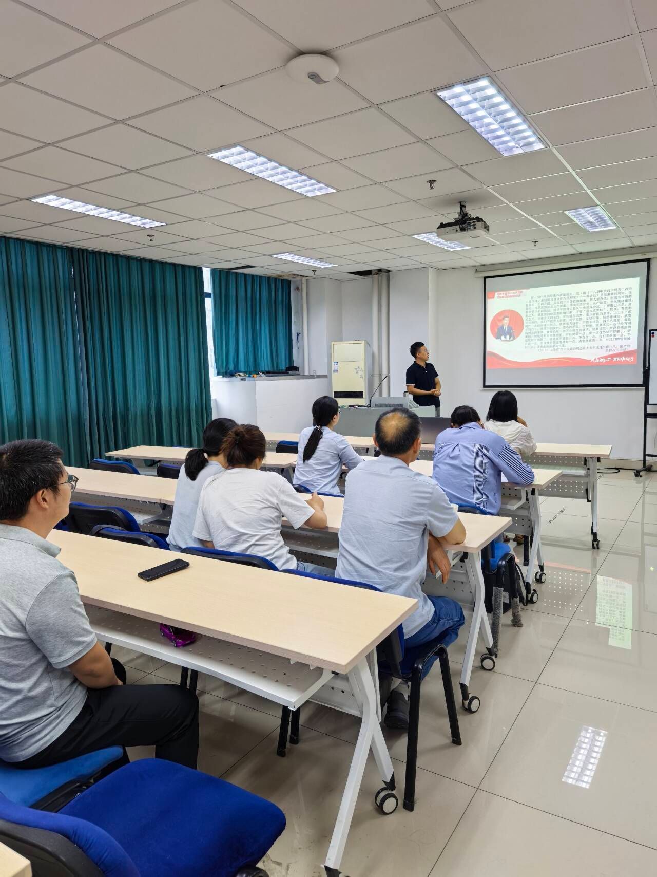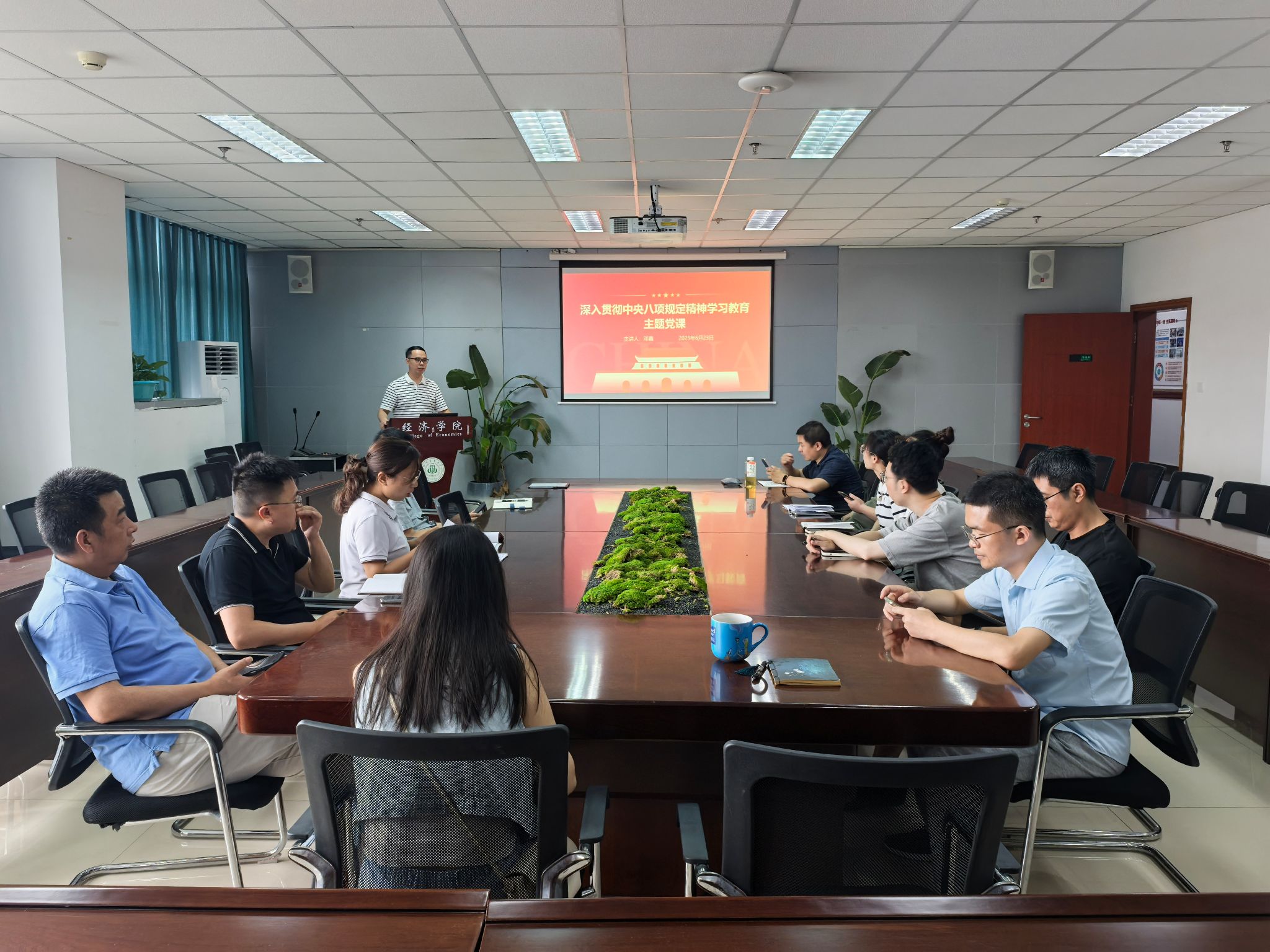 投资系党支部书记郭华老师在党课上讲到:“中央八项规定是新时代共产党人的作风标杆,必须常抓不懈、久久为功。全体教师党员要坚持学用结合、知行合一,把学习成果转化为改进作风的实际行动,以优良作风保障学院事业高质量发展。”