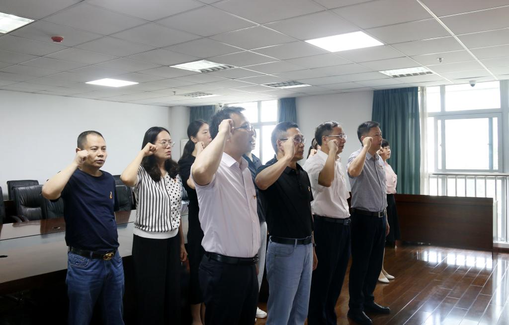 会议最后,在鲜红的党旗下,大家庄严举起右手,握拳宣誓,重温入党誓词。支部全体党员再次接受心灵的洗礼,铭记庄严的承诺,牢记共产党员的使命担当,坚定为党的事业奋斗终身的决心。