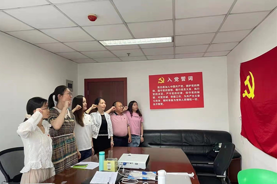 支部全体教师党员重温入党誓词,并纷纷表示,将在中国共产党的领导下不忘初心、牢记使命,为新时期党和国家的发展贡献力量。