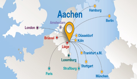 而亚琛本身地处德国、荷兰、比利时交界的欧洲核心位置,被誉为“欧洲心脏”。亚琛政府在地域经济上,以亚琛工大强大的科研实力为核心,吸引无数世界顶尖跨国企业来此创办研发中心,如微软、福特、爱立信、飞利浦、联合技术、三菱等著名公司。