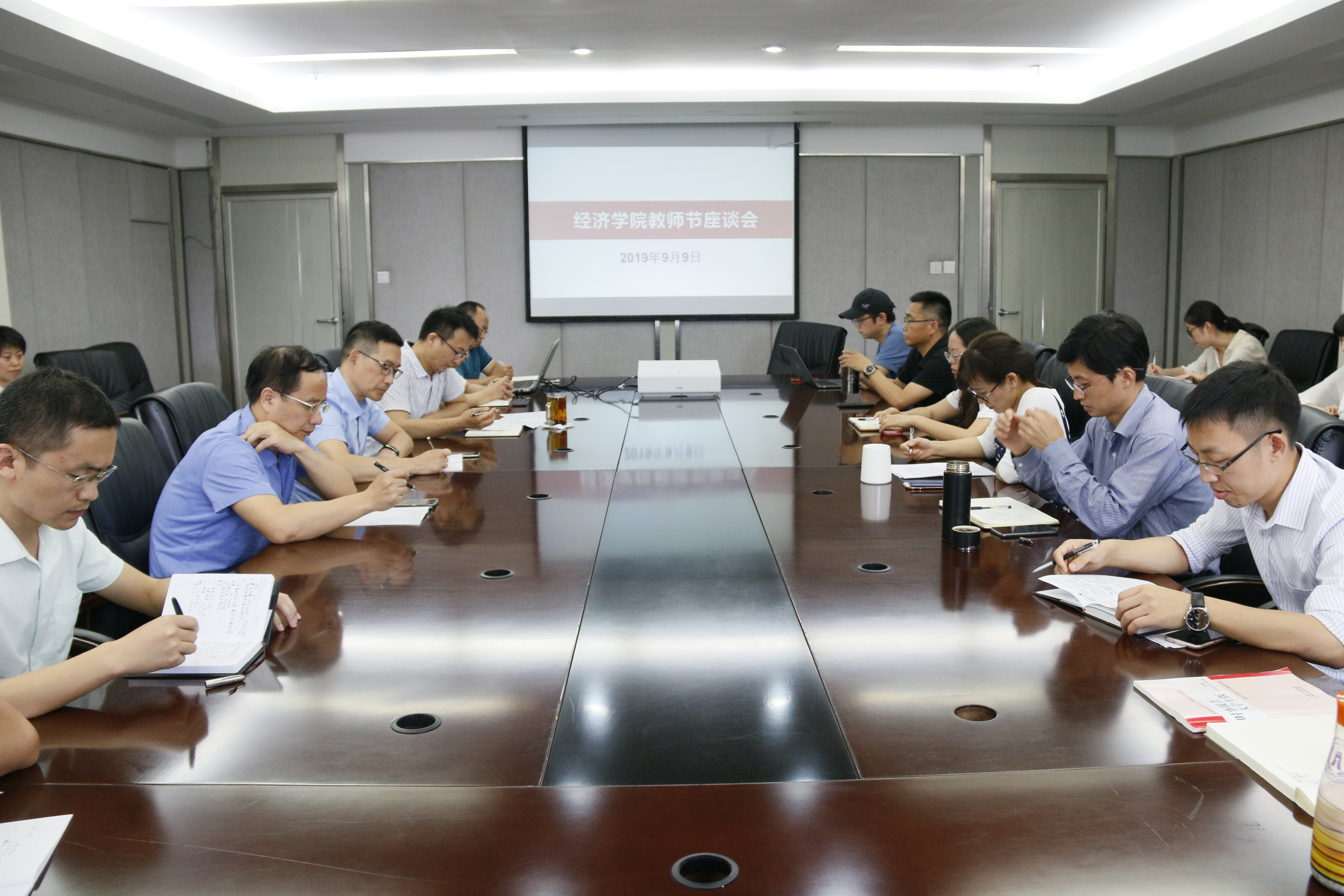 为了庆祝第三十五个教师节,并进一步推进师德师风建设,学院于2019年9月9日在1教303召开教师节座谈会,学院党委书记漆雁斌、院长蒋远胜、党委副书记何仁辉、各系室主任、近两年新入职的教师、科研成果突出教师代表、优秀班主任及本科课堂教学成绩突出的教师参加了会议,会议由学院党委副书记何仁辉主持。