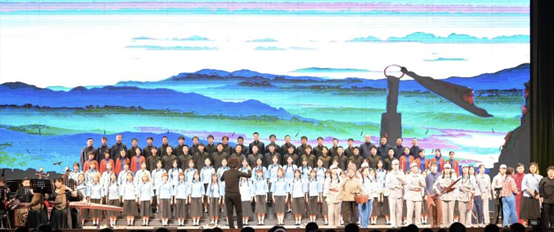活动现场,我院师生通过合唱、器乐演奏、动作表演相结合的崭新形式倾情演绎经典歌曲《在太行山上》。合唱组师生以昂扬的精神面貌、洪亮的声音,深情讴歌了解放军将士无所畏惧、勇往直前的战斗精神,点燃了全场师生的满腔激情。器乐组的钢琴、大提琴、小提琴等西洋乐器与古筝、扬琴等中国古典乐器完美融合,给现场观众带来了莫大惊喜。话剧动作组成员的表演作为点睛之笔,展现出当时“母送儿、妻送郎”的感人场面和太行山游击队的激昂斗志,带领观众走进那段令人难忘的抗战岁月。