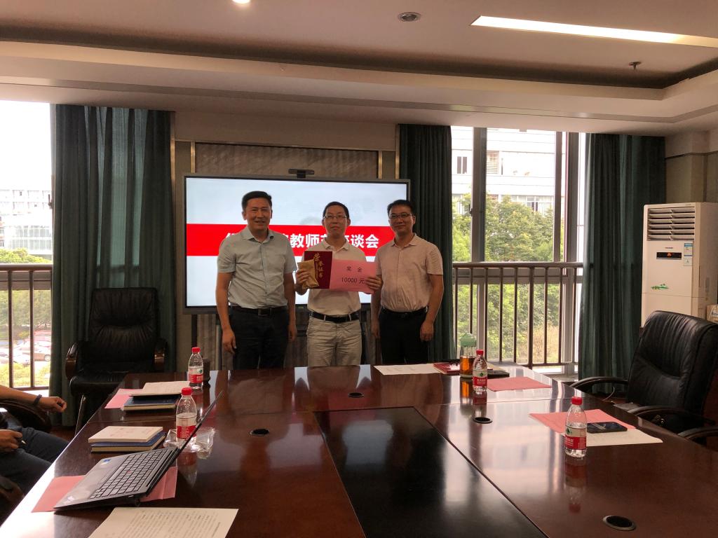 青年园丁,辛勤耕耘。为促进教师典型带动感召身边更多的老师见贤思齐,座谈会上举行了学院“青年园丁奖教金”颁奖仪式,由吴平和何仁辉共同为学院本届青年园丁奖教金获得者,区域经济与金融研究所申云老师颁发奖状和奖金。