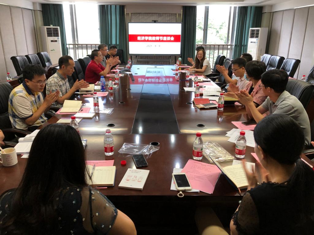 为庆祝第三十七个教师节,并进一步推进师德师风建设,学院于2021年9月9日在1教305召开教师节座谈会。学院党委副书记、纪委书记、工会主席何仁辉,学院党委委员、副院长、区域经济与金融研究所所长吴平,学院党委委员、投资系主任王玉峰,学院党委委员、党委办公室主任蔡丹,学院教代会主席、工会副书记李阳明,以及学院教师代表参加了会议,会议由何仁辉主持。