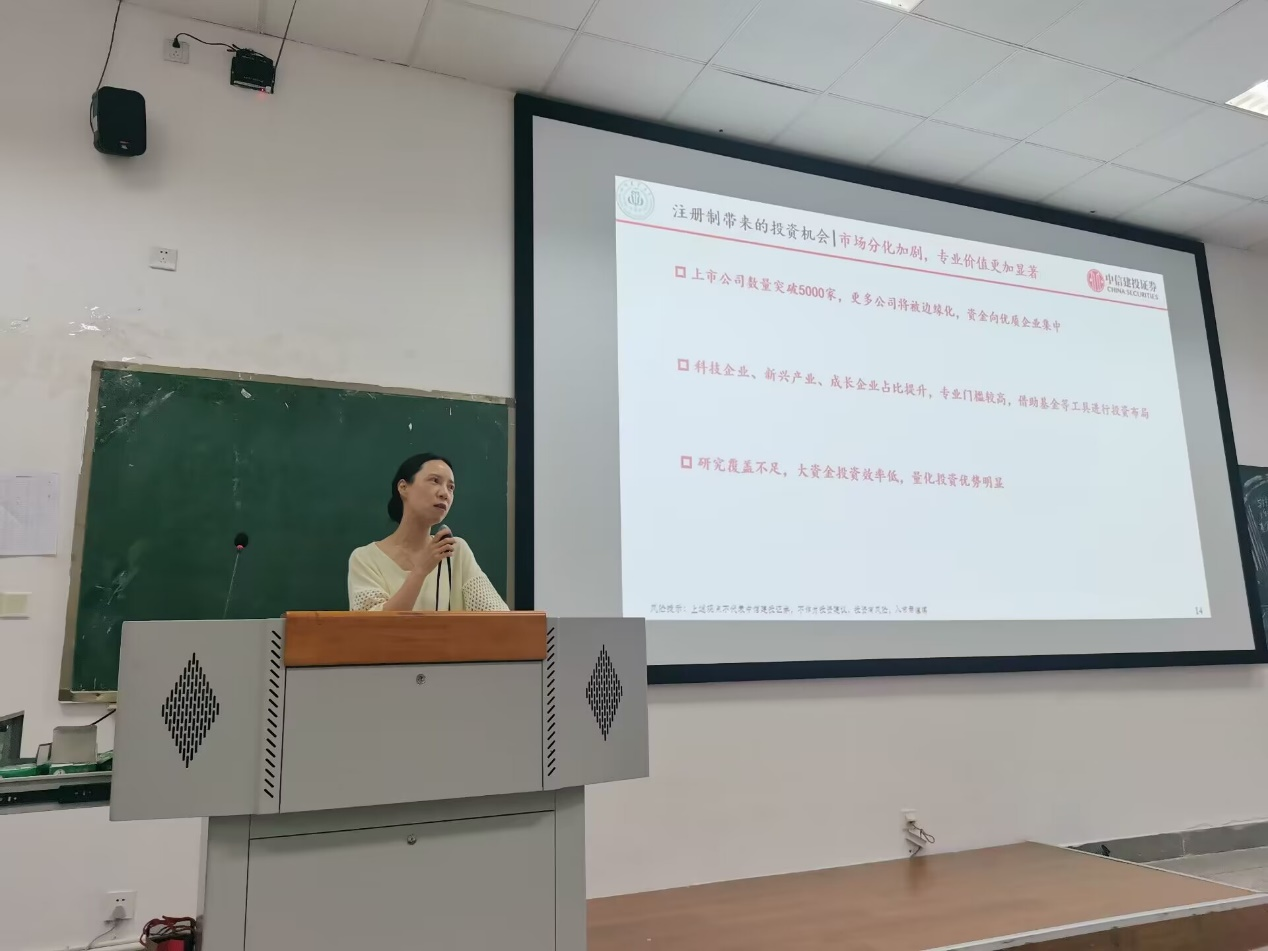 投资学专业积极适应新时期新文科建设对本科教育的发展要求,不断深化产教融合,促进教育链、人才链与产业链、创新链有机衔接。为提升学生的专业素养和就业竞争力,投资学系近期开展了一系列产学合作协同育人活动,邀请了多家金融机构的专家和实践者,为学生们带来了精彩的行业知识和实操技能的讲座。