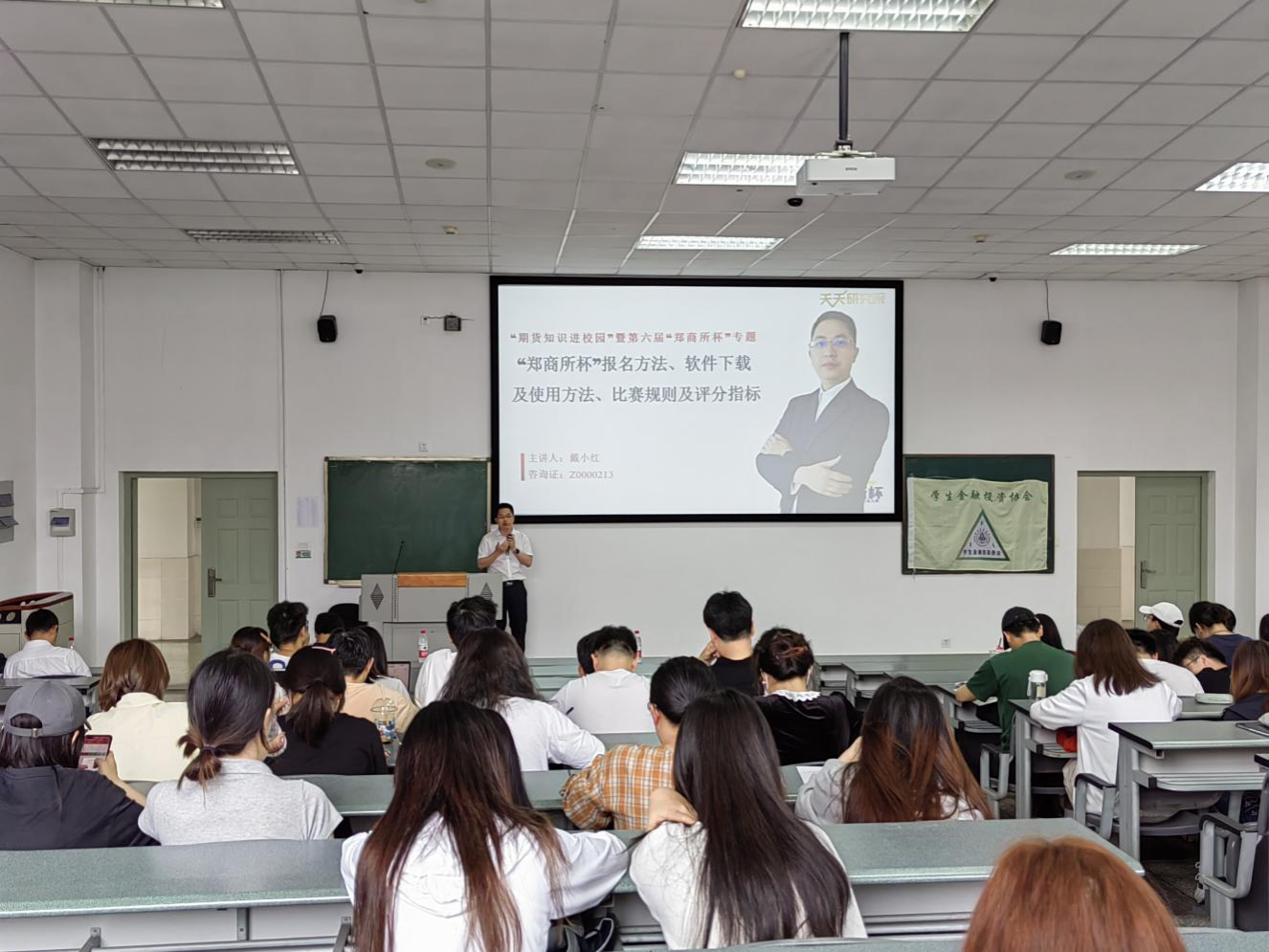 5月12日和5月26日,投资学系邀请著名期货公司国金期货有限责任公司的专家进入实践课堂,为学生进行衍生品交易实务的讲座与培训。国金期货研究所戴小红副所长、资深分析师何宁老师等多位业界专家共同为同学们讲授了商品期货投资研究框架与方法。国金期货的各位专家从农产品期货市场的基本概念、功能、特点、分类等方面,为同学们系统地讲解了农产品期货市场的基础知识,并结合国金期货在农产品期货领域的优势和案例,为同学们展示了农产品期货市场的实际运作和操作技巧,并强调了风险管理和合规经营的重要性。讲座结束后,专家们还与同学们进行了互动交流,解答了同学们关于农产品期货市场和国金期货的各种问题。