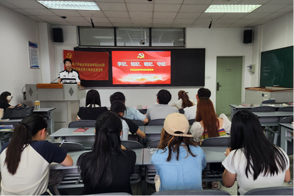 各师生党支部书记重点围绕学习贯彻习近平总书记关于全面加强党的纪律建设的重要论述和《中国共产党纪律处分条例》,分别以“知敬畏,明底线,做守党规遵党纪的模范”和“学纪、知纪、明纪、守纪”为主题,带领师生党员学原文、悟原理,准确把握“六项纪律”主旨要义和规定要求。教工党支部通报了《高校违规违纪违法典型案例汇编》,结合典型案例与身边案例,尤其是在招投标过程中容易出现的失误和问题,教育引导全院教职工加强对学校内部管理制度的学习,做到依规办事履职尽责。学生党支部通报了《学生警示教育案例集》,引导学生党员知敬畏、存戒惧、守底线,有力推动党纪学习教育入脑入心、走深走实。