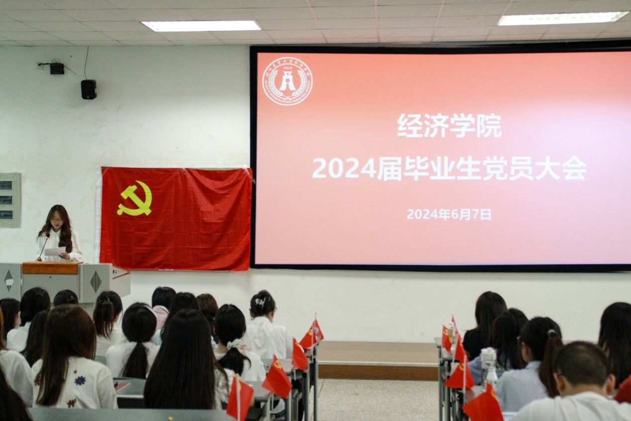 刘思麟对全体毕业生党员提出三个希望:希望大家牢记党员的政治身份,坚定理想信念,不断的拼搏,成为国之脊梁;希望大家牢记时代赋予青年党员的使命,担当作为,成为社会的栋梁;希望大家牢记“川农大精神”,传承我校爱国敬业、艰苦奋斗、团结拼搏、求实创新的传统基因,成为川农的骄傲。“如果机遇还未到,相信跬步可以登高台;若掌声还未来,请自己给自己喝彩;若是自在没有来,方寸间也可徘徊。”最后,刘思麟以一位师长的身份将这句话送给所有毕业生党员。她希望每一位即将奔赴人生的新舞台的经院学子,传承“川农大精神”,继续前进,开创更加美好的未来